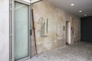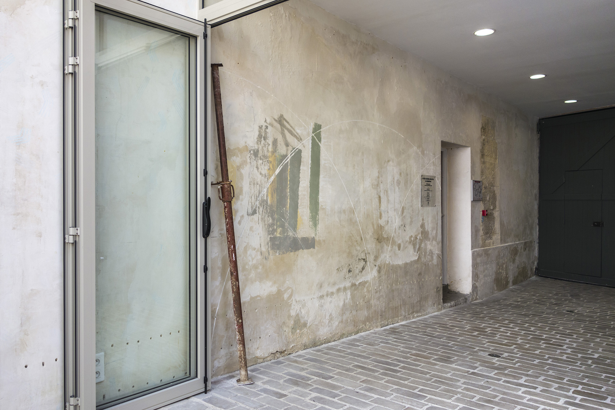 centring element used as a compass to engrave circles on the wall