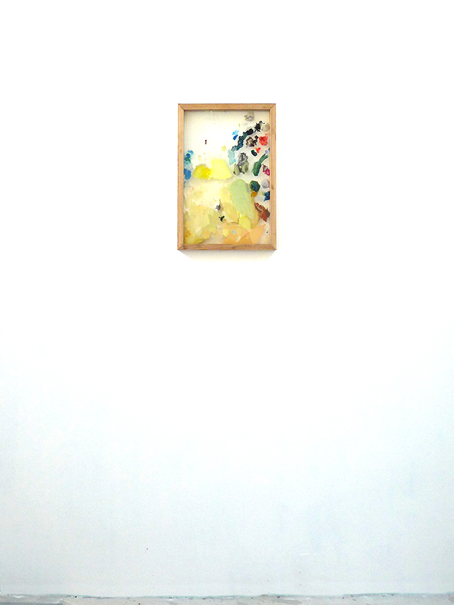 The previous guy’s palette various paints on glass, framed, 53 x 35,5 cm, 2015